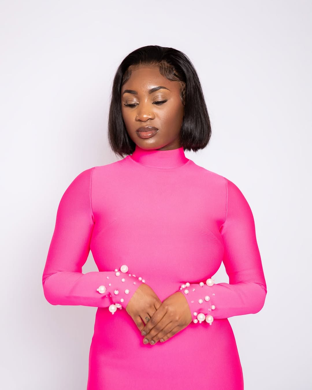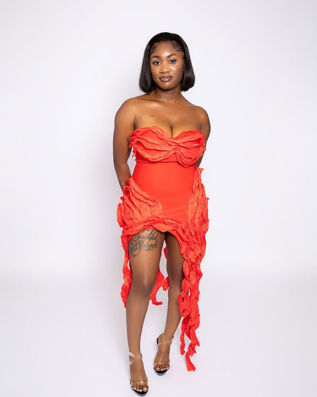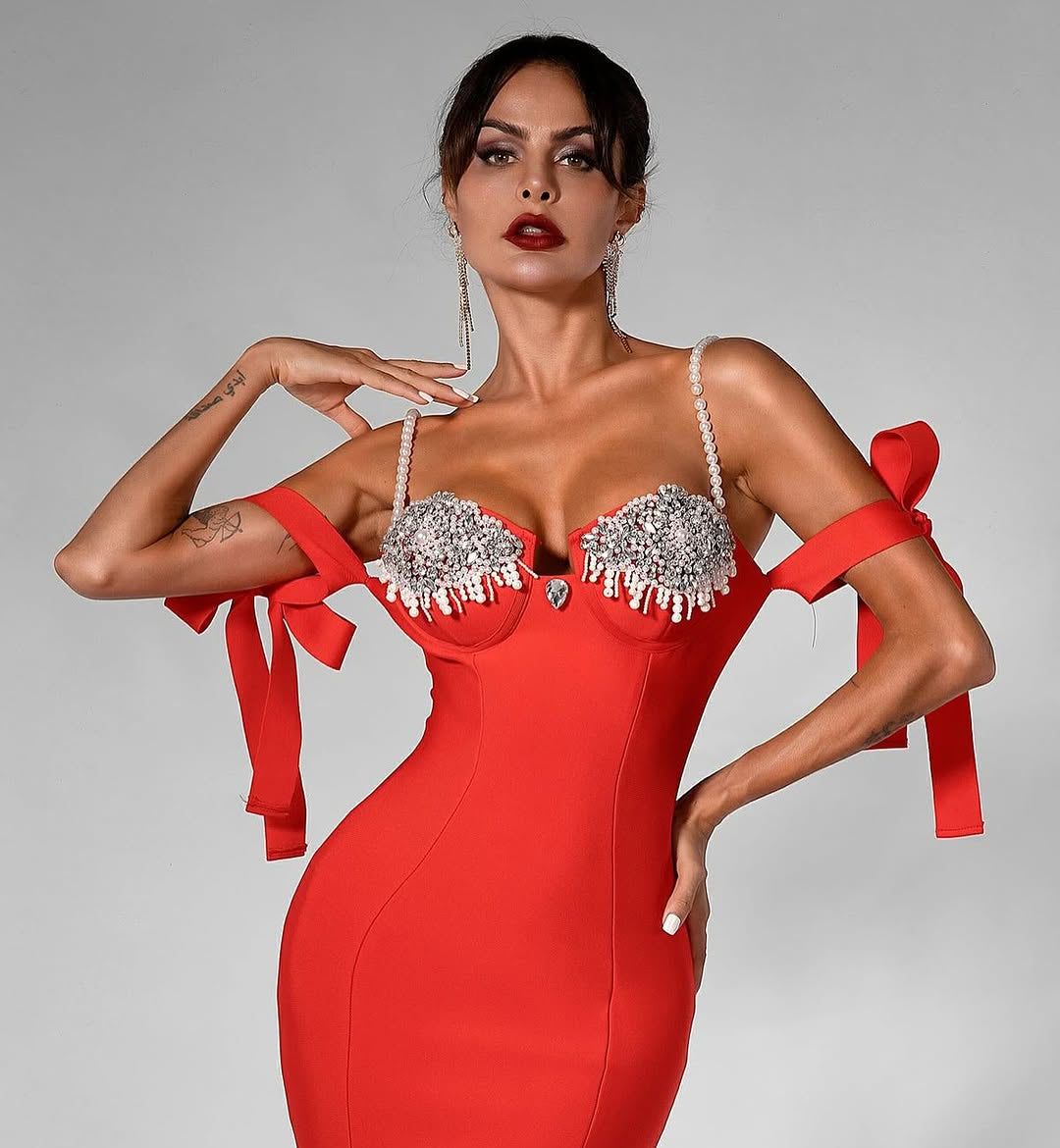 CHAMIE 3D White flower power contrast bodycon bandage dress.