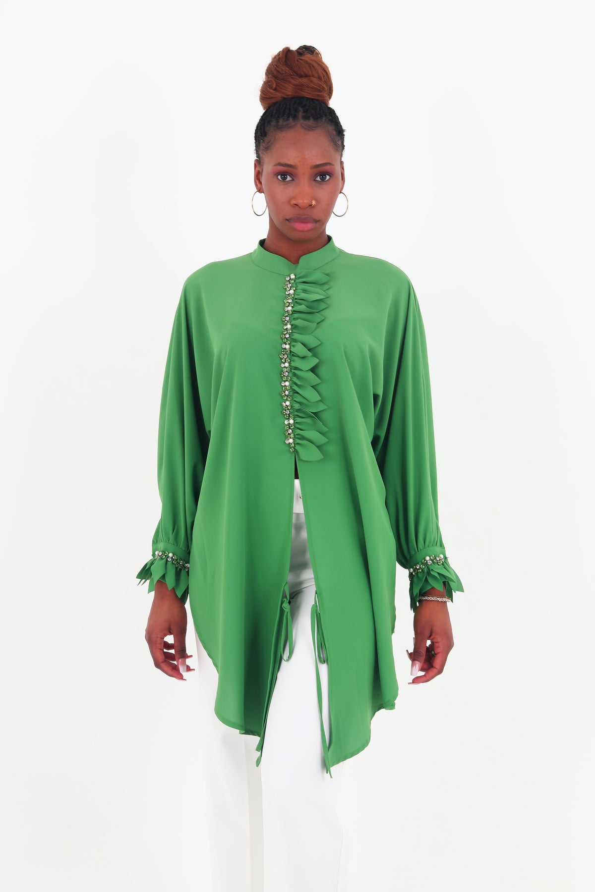 Add a touch of sophistication to your wardrobe with the Chamie Elegant Long Sleeve Green Top. Designed with a flattering fit and high-quality fabric, this top is perfect for office wear, casual outings, or evening events. Its timeless green hue and sleek design make it a versatile piece that pairs effortlessly with skirts, trousers, or jeans for a polished, chic look.